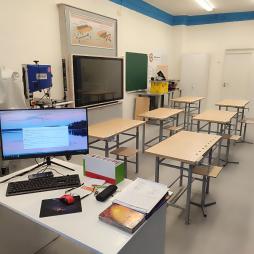Кабинет оборудован: учительским столом, стулом, книжными шкафами, стеллажами для дидактических игр и поделок, партами, ученическими стульями, имеется магнитная доска, раковина, водонагреватель. Рабочее место учителя укомплектовано компьютерной техникой.
